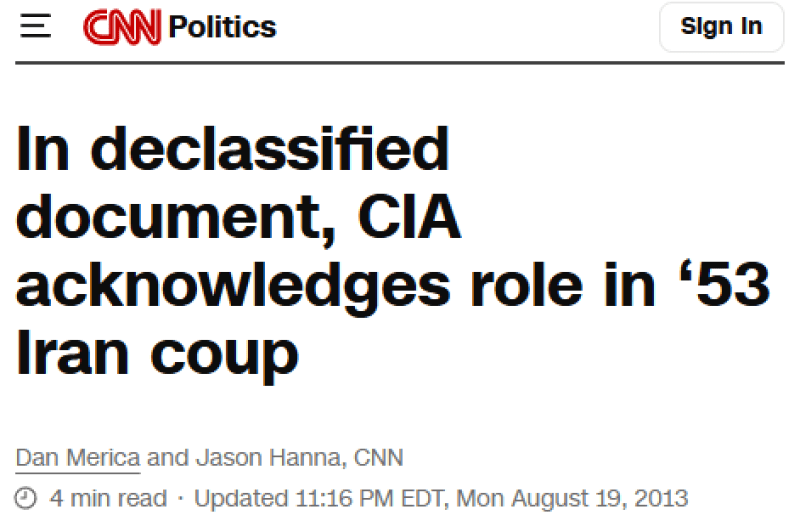 Même le documentaire de la chaîne BBC Channel 4 a reconnu l'implication historique de la BBC dans le coup d'État de 1953 contre le Premier ministre iranien démocratiquement élu Mohammad Mossadegh, reflétant une tradition ancienne et troublante.