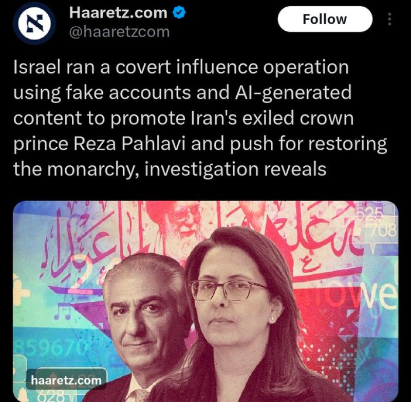 Le journal israélien Haaretz a révélé qu'Israël menait une opération d'influence secrète visant à installer Reza Pahlavi - le «prince héritier» autoproclamé et fervent partisan de l'État sioniste - comme marionnette à Téhéran. Pahlavi a désigné les responsables gouvernementaux et les médias d'État comme «cibles légitimes» d'attaques.