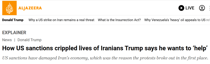 Al-Jazeera : «Les sanctions américaines ont nui à l'économie iranienne, ce qui est à l'origine des manifestations». (Capture d'écran Al-Jazeera)
