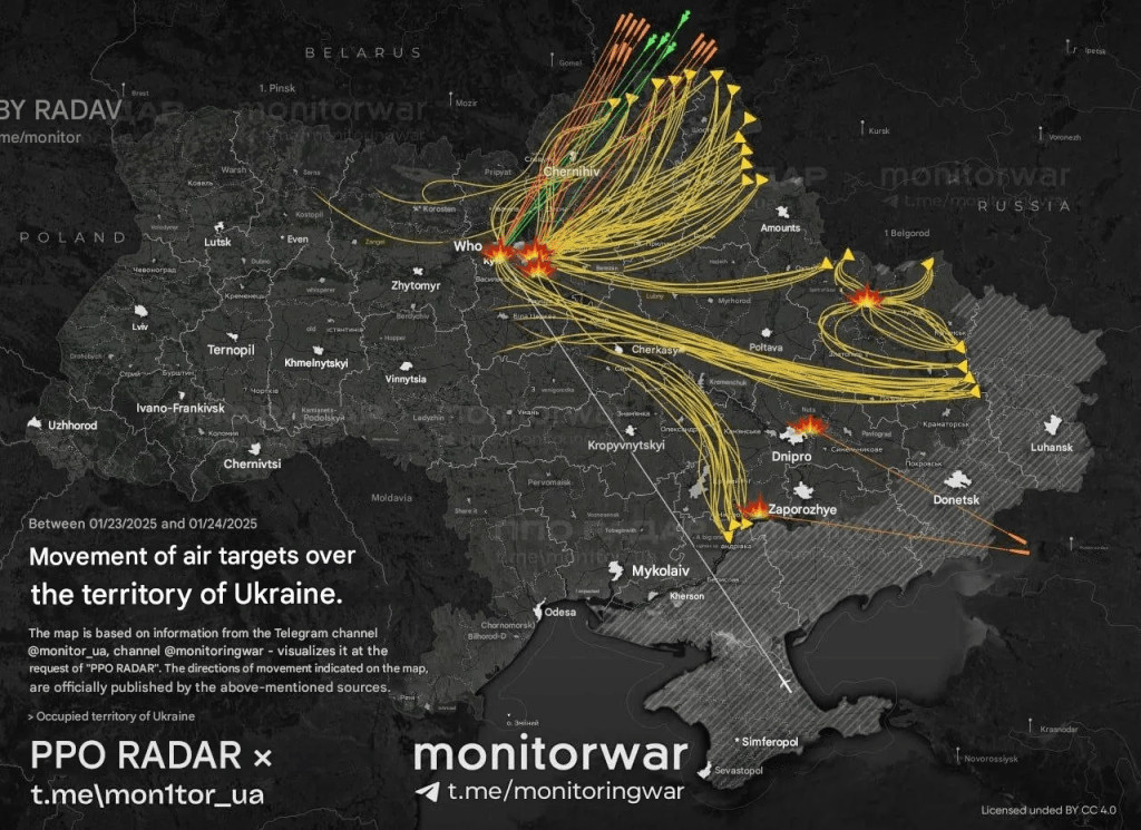 «Suite aux attaques de drones Geran-2 de la nuit dernière, la quasi-totalité de la ville de Chernihiv, ainsi que plusieurs autres villes, se sont retrouvées sans électricité.