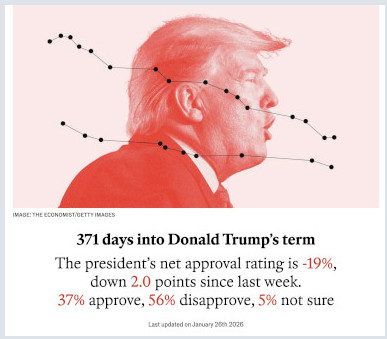 His move against allies to grab Greenland is unpopular. Bombing Iran and abducting the President of Venezuela was not welcome.