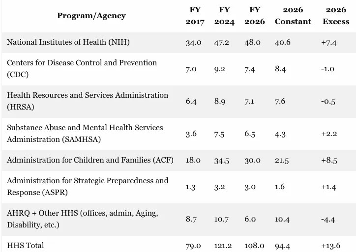 HHS Discretionary Spending, 2017 to 2026