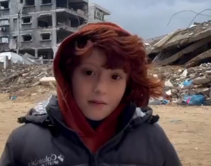 À Gaza, un enfant, entouré de décombres et balayé par des vents violents, demande au monde : « Si vous étiez à ma place, que feriez-vous ? »
