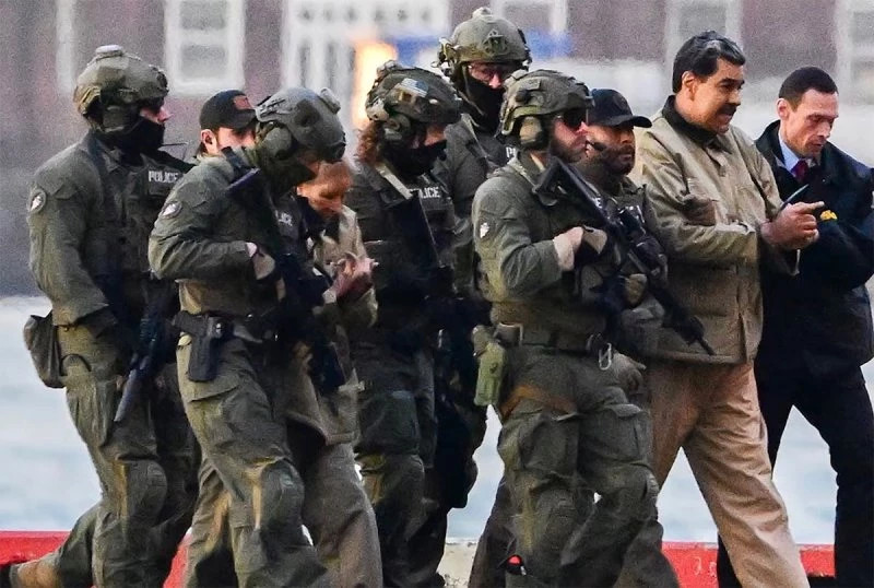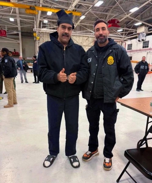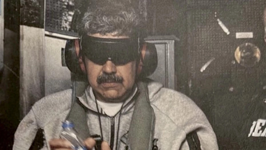 Suit une série de séquences inimaginables dans un monde civilisé. Le président Maduro et Cilla Flores sont transférés à bord du navire d'assaut « USS Iwo Jima ». Ils transitent par Guantánamo. Des photos du chef de l'Etat circulent - entravé, masque sur les yeux, en mode Saddam Hussein ou El « Chapo » Guzman. Il s'agit de salir son image, polluer sa respectabilité. Le couple descend de l'avion sur une base militaire de la région de New York. On se rend compte, à leur démarche, que tous deux ont été blessés. Elle aux côtes, lui aux jambes. Dans l'épreuve, même menotté, Maduro reste Maduro. Il jette un cordial « Happy New Year, good night » à ses geôliers. Des agents de la DEA lui tapent plutôt amicalement sur l'épaule. Il fait un ostensible V de la victoire face caméra.