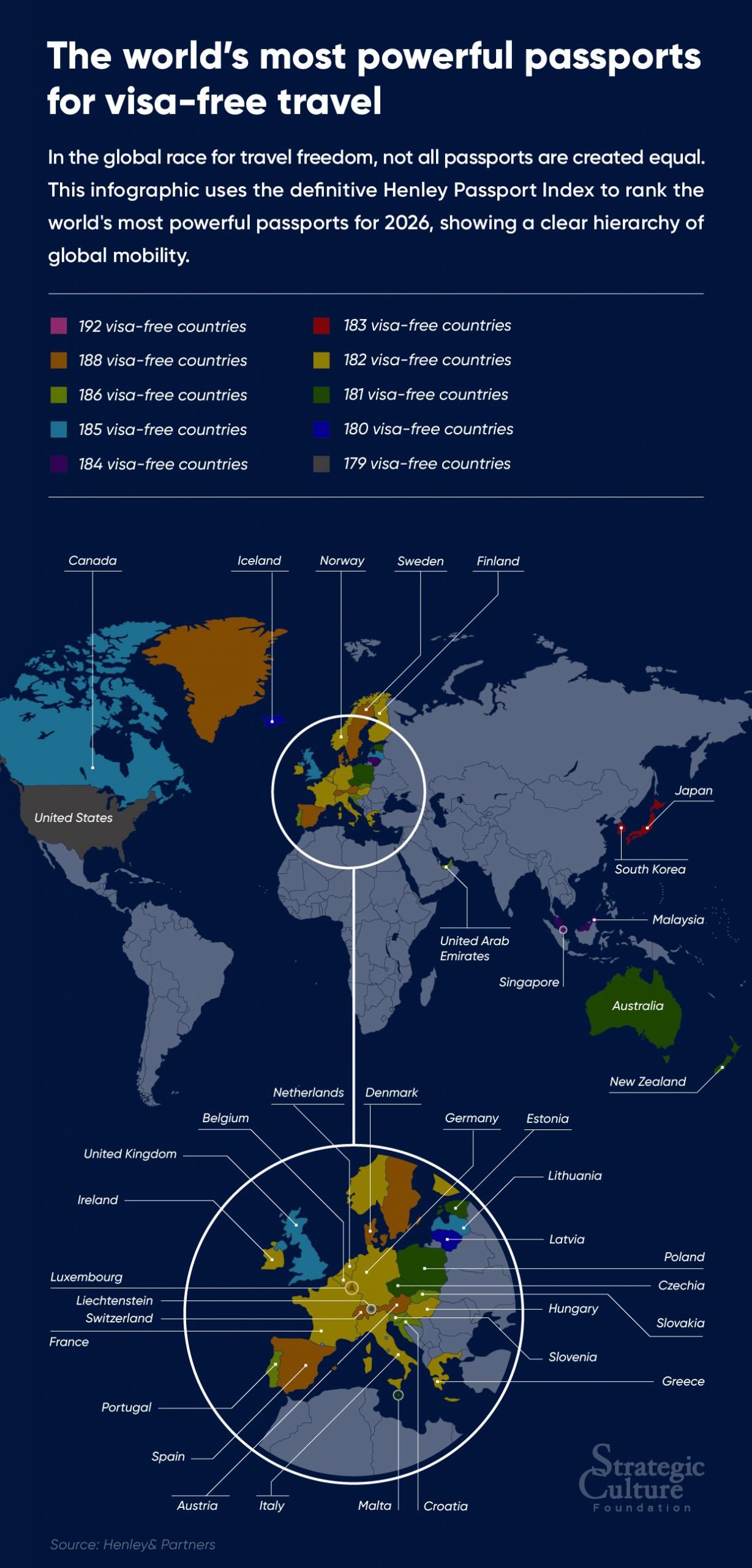 In the global race for travel freedom, not all passports are created equal. This infographic uses the definitive Henley Passport Index to rank the world's most powerful passports for 2026, showing a clear hierarchy of global mobility.