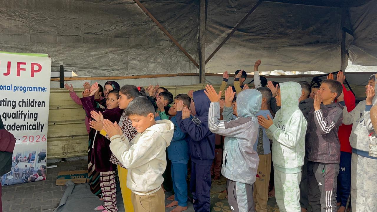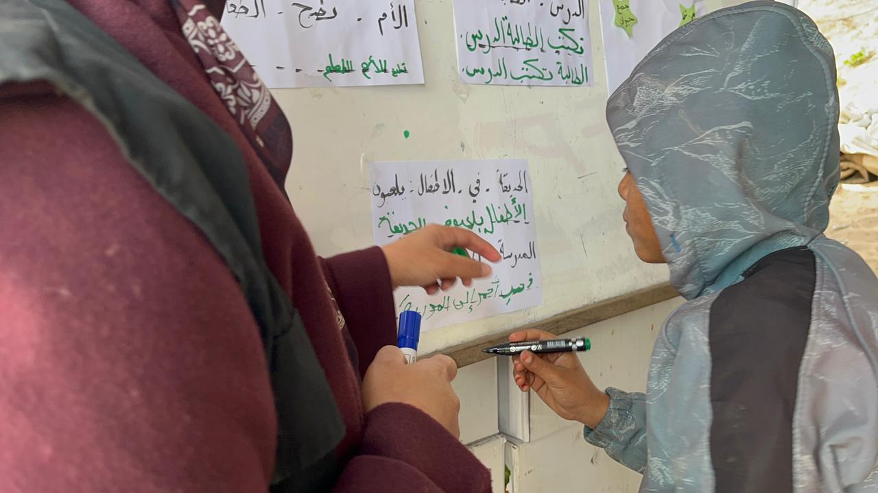 Dans le camp Al-Fajr, la salle de classe simple se transforme en un petit espace d'espoir. Des enfants y écrivent leurs noms, apprennent les mathématiques et retrouvent une partie de leur enfance. La tente ne devient pas seulement un abri, mais un espace d'apprentissage et de vie.