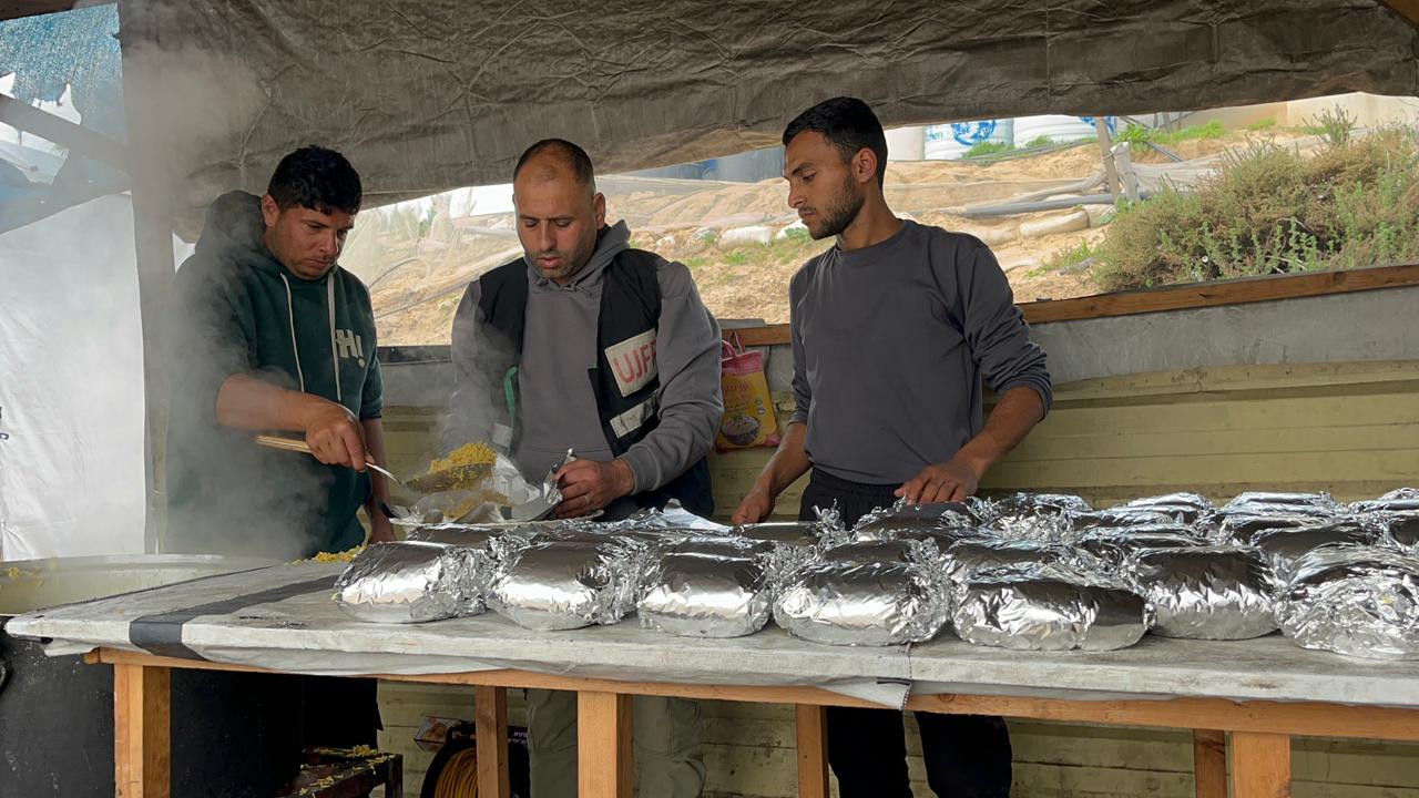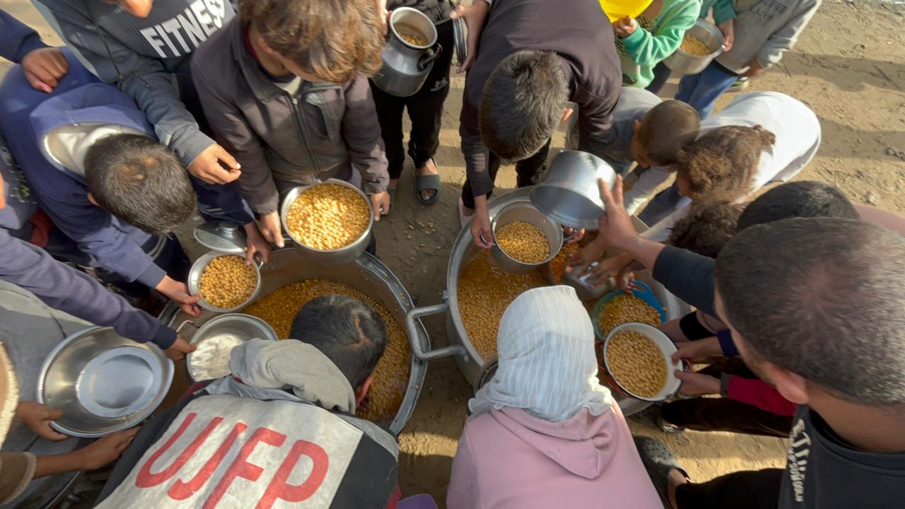 À travers notre cuisine à Mawasi Khan Younès, les équipes de terrain travaillent à livrer des repas quotidiens aux familles les plus vulnérables. Ces efforts se concentrent dans des zones à forte densité de population et aux besoins accumulés, notamment les camps Al-Fajr et Al-Sumoud à Mawasi Khan Younès, où vivent de nombreuses familles agricoles ayant perdu leurs terres et leurs moyens de subsistance, ainsi que notre cuisine dans le camp Al-Hilal à Deir al-Balah, situé au cœur de la ville, qui dessert des centaines de familles déplacées venues de différentes régions. Ces repas constituent une première ligne de protection pour les enfants et les personnes âgées contre les effets de la malnutrition, dans des environnements dépourvus du minimum de sécurité alimentaire. Ils contribuent également à réduire les risques sanitaires liés au manque de nourriture. De plus, ces interventions offrent aux familles un sentiment relatif de stabilité et réduisent l'anxiété liée à l'approvisionnement alimentaire, en particulier dans les camps qui dépendent presque entièrement de l'aide humanitaire. Elle protège le corps contre l'effondrement, soutient la capacité des enfants à se concentrer et à apprendre, et donne aux familles l'énergie physique et psychologique nécessaire pour affronter un nouveau jour.