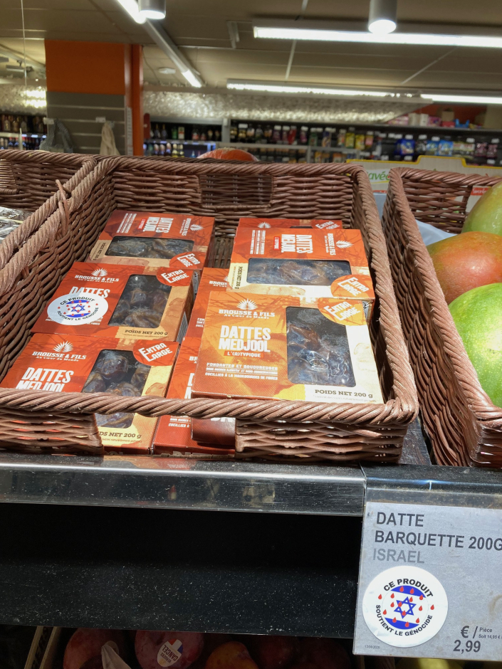 Carrefour, comme nous l'avons montré, est le principal revendeur des dattes Medjoul de Brousse Et FIls. Et même si nous boycottons toute l'enseigne en raison de ses liens avec Israël et les colonies israéliennes, il n'est pas superflu d'alerter les clients de Carrefour, en cette période pré-ramadan !