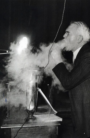 Georges Claude demonstrating "liquid air" (1939).  from here