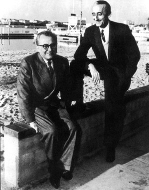 Jacques-Yves Cousteau with his partner and co-developer of the Aqua-Lung Emile Gagnan.