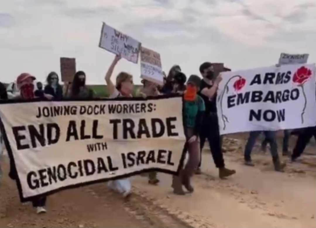 En solidarité avec les dockers méditerranéens en grève contre les livraisons d'armes vers Israël, des militants israéliens anticolonialistes ont cherché à franchir la clôture frontalière fortement fortifiée de Gaza, pour pénétrer dans le camp de concentration. Les soldats les ont arrêtés, comme on peut s'en douter.