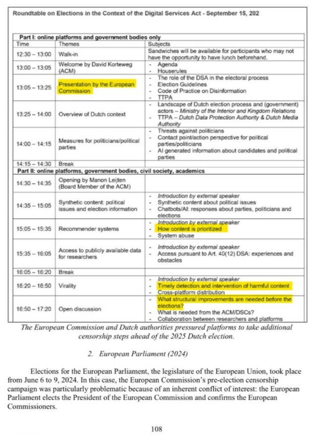 Par exemple, pour les élections néerlandaises, la Commission européenne et les autorités néerlandaises ont directement exercé des pressions sur différentes plateformes internet les obligeant à prendre des mesures de censures en vue des élections de 2025 :