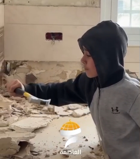 Voilà les conséquences des ordres de démolition des maisons palestiniennes par Israël : on peut voir ici un enfant palestinien de Jérusalem en train de démolir de ses propres mains la maison de sa famille dans la ville de Sur Baher, au sud de Jérusalem occupée.