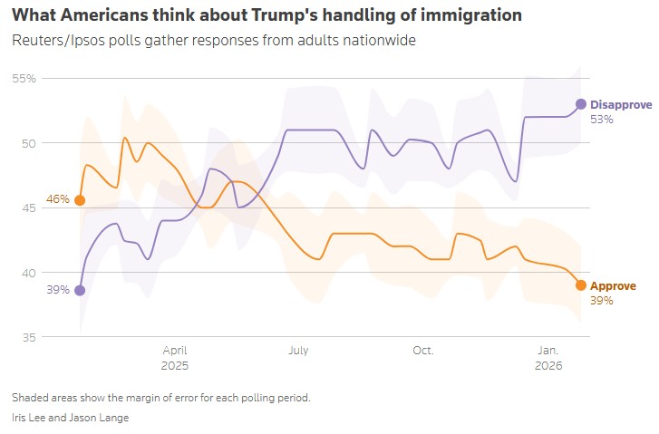 A January 26th Reuters article carried the headline "Trump's Immigration Approval Drops to Record Low," and the polling results supported that claim.