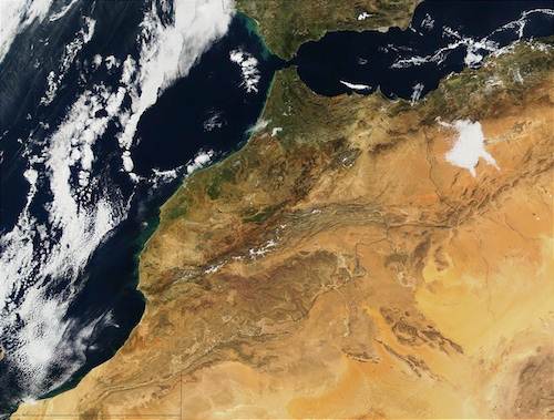 Vue satellite de l'Afrique du Nord-Ouest : si vous enroulez ce paysage autour d'une boule, vous obtiendrez Arrakis