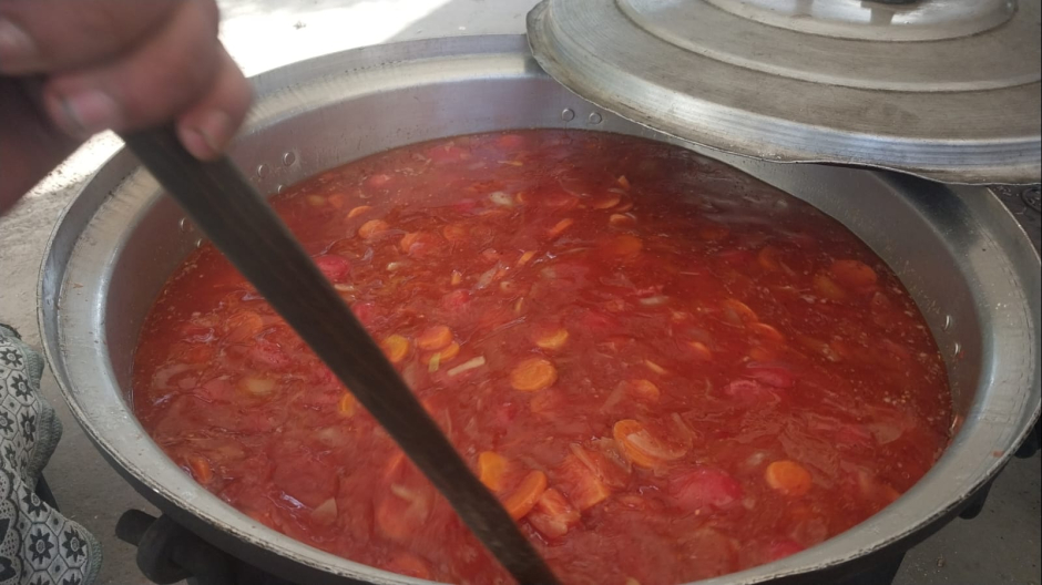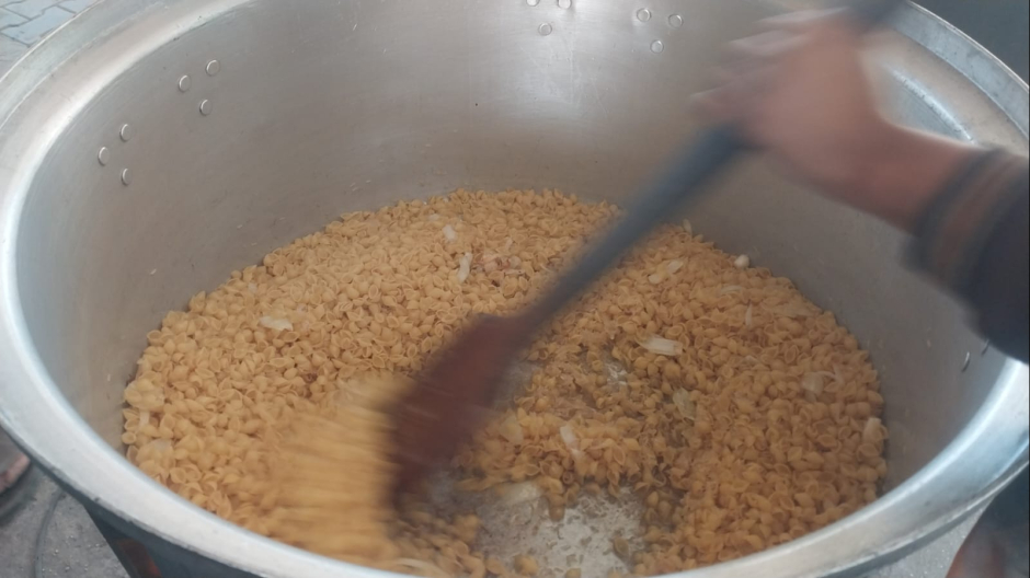 Les équipes de l'UJFP ne se contentent pas de distribuer des repas prêts à l'emploi : elles les cuisinent de leurs propres mains au cœur même des camps, dans des conditions extrêmement difficiles et avec une pénurie aiguë de ressources. Préparer les repas n'est pas une simple tâche logistique, mais un travail quotidien éprouvant, qui commence par sécuriser ce qui est disponible et s'achève par la distribution d'un repas qui tente d'être suffisant, nourrissant et équitablement réparti, dans une réalité offrant très peu de choix. Les mères savent que le repas n'est pas un luxe, et qu'il peut constituer la frontière entre une journée que l'on parvient à poursuivre et une journée qui épuise. Elles savent aussi que cet effort quotidien fourni par les équipes leur offre une rare occasion de reprendre leur souffle.