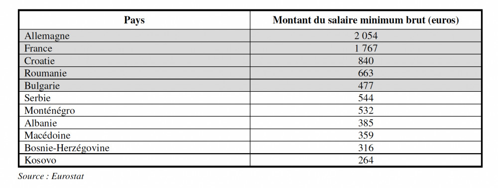 Concernant les Balkans occidentaux, un rapport de l'Assemblée nationale présentait le salaire minimum de ces pays.