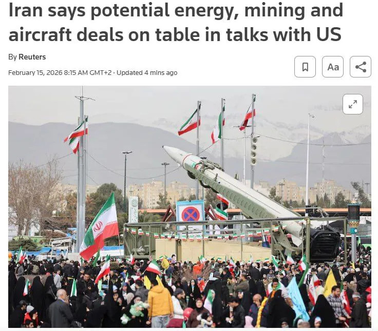 "L'Iran ouvrira certains secteurs économiques aux entreprises américaines dans le cadre d'un accord à venir. Le vice-ministre des Affaires étrangères a déclaré que les gisements de pétrole et de gaz ainsi que les investissements miniers iraniens seraient accessibles aux entreprises américaines. Téhéran prévoit également d'acquérir plus de 100 avions de ligne. L'activité économique totale pourrait dépasser 500 milliards de dollars".