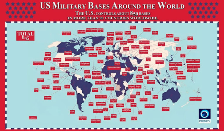 Les États-Unis possèdent actuellement environ 800 bases militaires à l'étranger. Cela représente 90% de toutes les bases militaires détenues par un pays hors de leurs frontières.