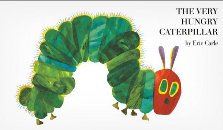 En en-tête de l'article, nous voyons "La Chenille Affamée (qui Fait des Trous)" (" The Very Hungry Caterpillar") qui est l'héroïne de l'album illustré d'Eric Carle pour enfants paru en 1969 aux États-Unis (World Publishing) et en édition française en 1972 chez Fernand Nathan sous le titre : "La Petite Chenille qui Faisait des Trous".