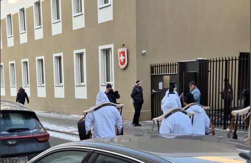 Le 26 janvier, le groupe de voyageurs suisses a eu l'occasion de saluer personnellement l'ambassadeur de la Confédération suisse à Moscou, Jürg Burri. Comme 31 autres ambassadeurs nouvellement nommés, il avait remis ses lettres de créance au président russe Vladimir Poutine le 15 janvier 2026. Les cloches ont également été utilisées avant la rencontre avec M. Burri: dans le froid glacial, des femmes et des hommes vigoureux ont fait résonner les cloches depuis la station de métro Chistye Prudy jusqu'à l'ambassade suisse, située à Per. Ogorodnaya Sloboda. Les passants moscovites ont observé la scène avec étonnement et joie.