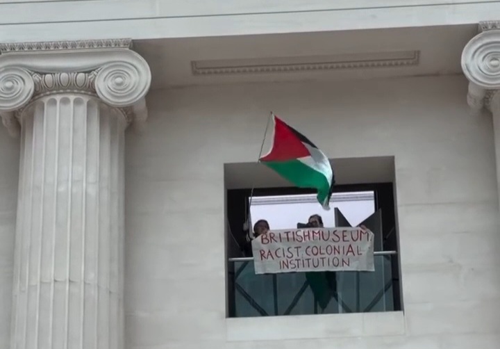 Et des militants ont déployé une banderole à l'intérieur du British Museum et occupé la salle 57, où le mot "Palestine" a été retiré.