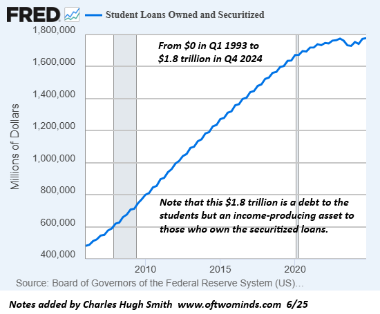 An economy where people are increasingly relying on gambling as their last-ditch means to secure a future that is less precarious than the present is not a "good economy" except for the top 10%. And to the degree their wealth is also a gamble placed in a central-bank casino, the precarity of all this wealth is masked by the artificial "goodness" of statistics that reflect artifices rather than the real world.