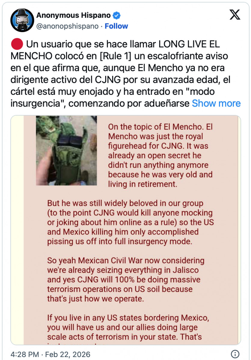 The JNGC is already quite upset with the Trump administration, because it turns out that the CIA  was heavily involved in locating El Mencho...