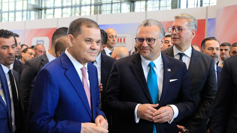 Le Premier ministre libyen, Abdul Hamid Dbeibah, et Massad Boulos, conseiller pour l'Afrique du président Donald Trump (à droite), assistent au Sommet libyen sur l'énergie et l'économie à Tripoli, en Libye, le 24 janvier 2026.