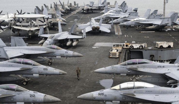 Douze avions de guerre électronique EA-18G Growler embarqués.