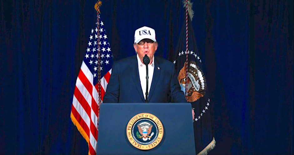 Trump announcing his aggression against Iran in a video released at 2:30 am EST Saturday morning. (Truth Social)