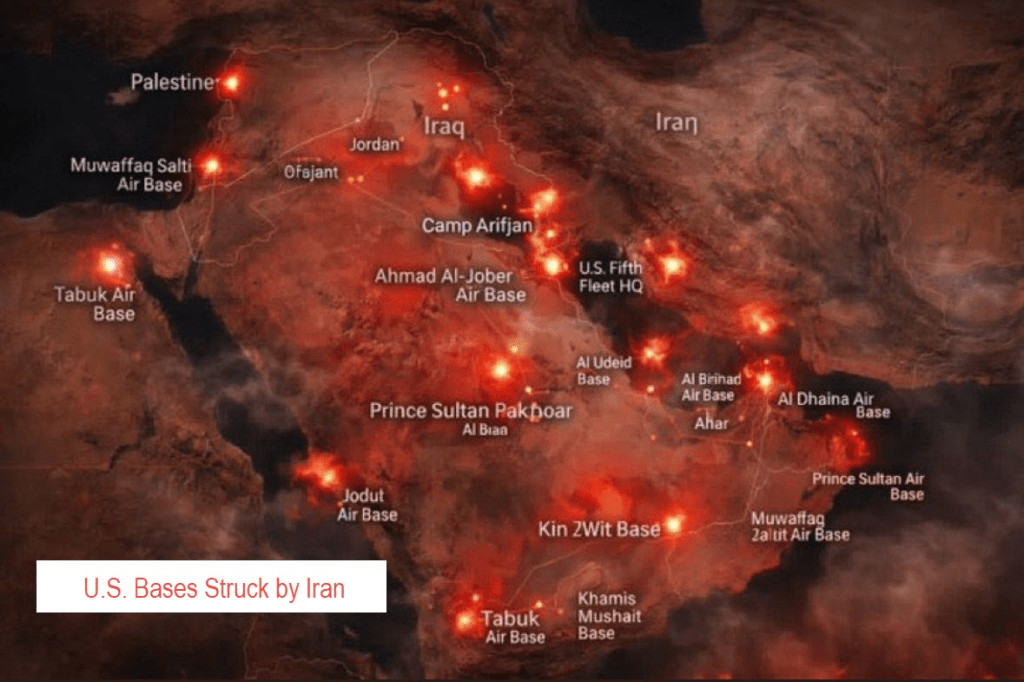Ce matin, vers 7 h, j'ai été informé que "cinquante (50) avions venaient de décoller de Dubaï". Ma source pensait qu'il s'agissait d'une mission d'attaque. Mais on m'informe maintenant que Dubaï aurait exigé le retrait immédiat de toutes les forces américaines. Cela n'est pas confirmé. J'ai également appris que les États-Unis pourraient être en train de repositionner d'urgence leurs moyens militaires, car la situation est devenue trop dangereuse pour eux :