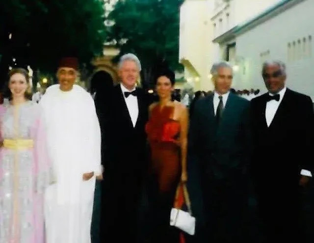 Juillet 2002, Rabat. Le roi Mohammed VI épouse Lalla Salma Bennani. Bill Clinton, invité en raison de la longue relation diplomatique entre les USA et le Maroc, amène avec lui comme invités personnels Jeffrey Epstein et Ghislaine Maxwell. Selon le New York Post, les collaborateurs de Clinton furent consternés par cette demande. Une source citée par AOL rapporte : "Clinton, Epstein et Ghislaine étaient assis avec le roi. C'était un mariage formel, dîner assis, smoking, très élégant". Il convient de préciser qu'Epstein n'était pas l'hôte du palais royal marocain - il était le plus-one d'un ancien président. Il n'existe aucune preuve d'une relation directe entre Mohammed VI et Epstein.