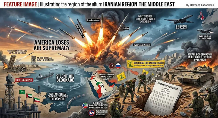 - Les États-Unis et Israël ont misé sur le "choc de l'assassinat et de la décapitation", mais se heurtent désormais à un réseau de missiles inépuisable, à une usure financière et militaire dévastatrice et à l'aveu de la nécessité de six semaines supplémentaires, signifiant l'échec d'une action rapide et décisive).