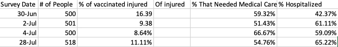 Following this, a few parties like Steve Kirsch and his vaccine safety research foundation hired polling firms to directly survey the public on vaccine injuries and provided quantitative data on what was happening. In 2022, of those vaccinated: