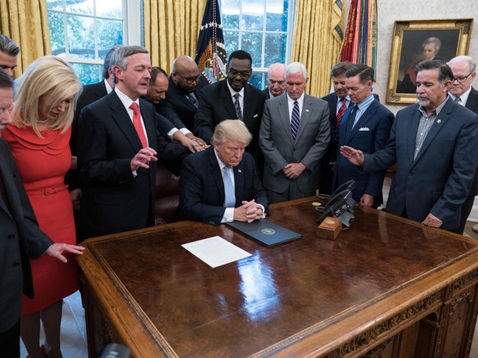 [4] " Pastors pray over Trump in the Oval Office", Reuters, March 6, 2026.