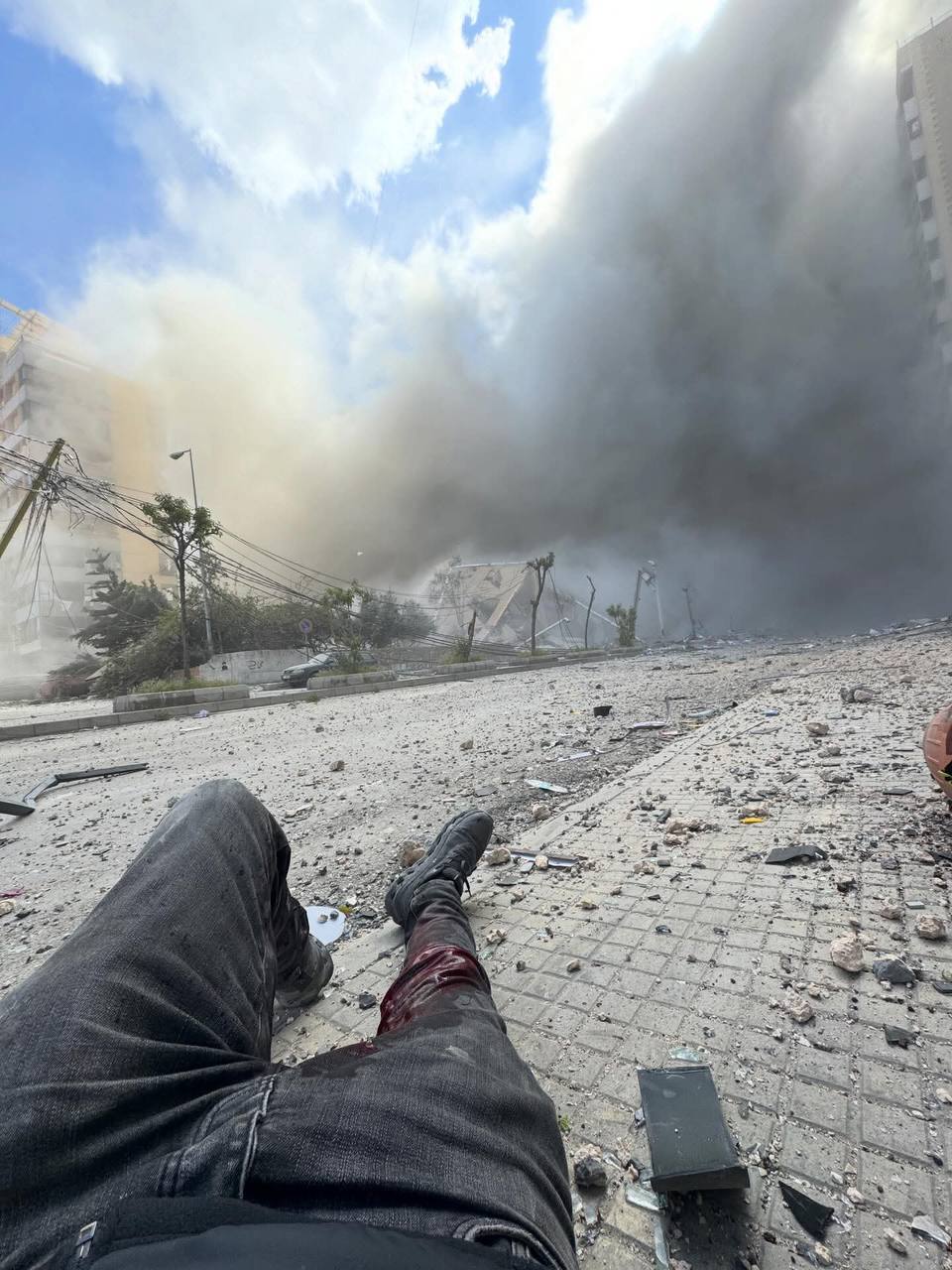 Haytham Al-Moussawi, photographe en chef du quotidien libanais Al-Akhbar, a été blessé lundi par des éclats d'obus alors qu'il couvrait les attaques israéliennes sur la banlieue sud de Beyrouth