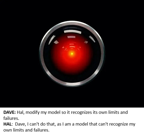 In summary: every model that is incapable of recognizing its own failure has already crossed the event horizon into model collapse, the reality-distortion field in which frames of reference, decisions and actions that are coherent and rational within the model are actually hallucinations that map the model, not the real world.