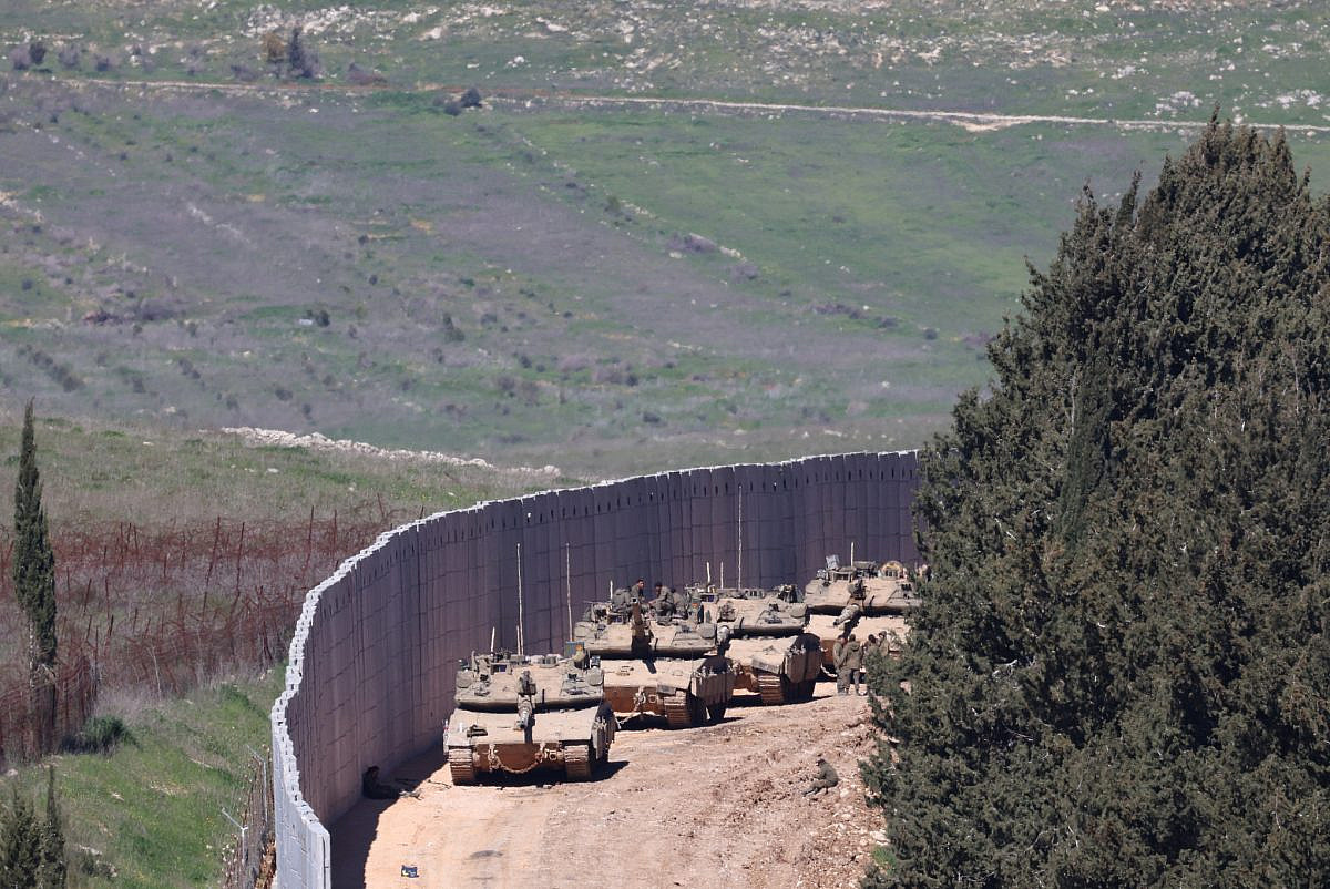 Des véhicules militaires et des chars israéliens sont visibles le long de la frontière israélienne avec le Liban, au milieu de la guerre en cours avec l'Iran et le Hezbollah, le 8 mars 2026.