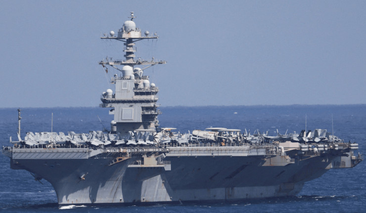 Le transporteur est accompagné de son groupe de frappe, y compris des destroyers à missiles guidés.