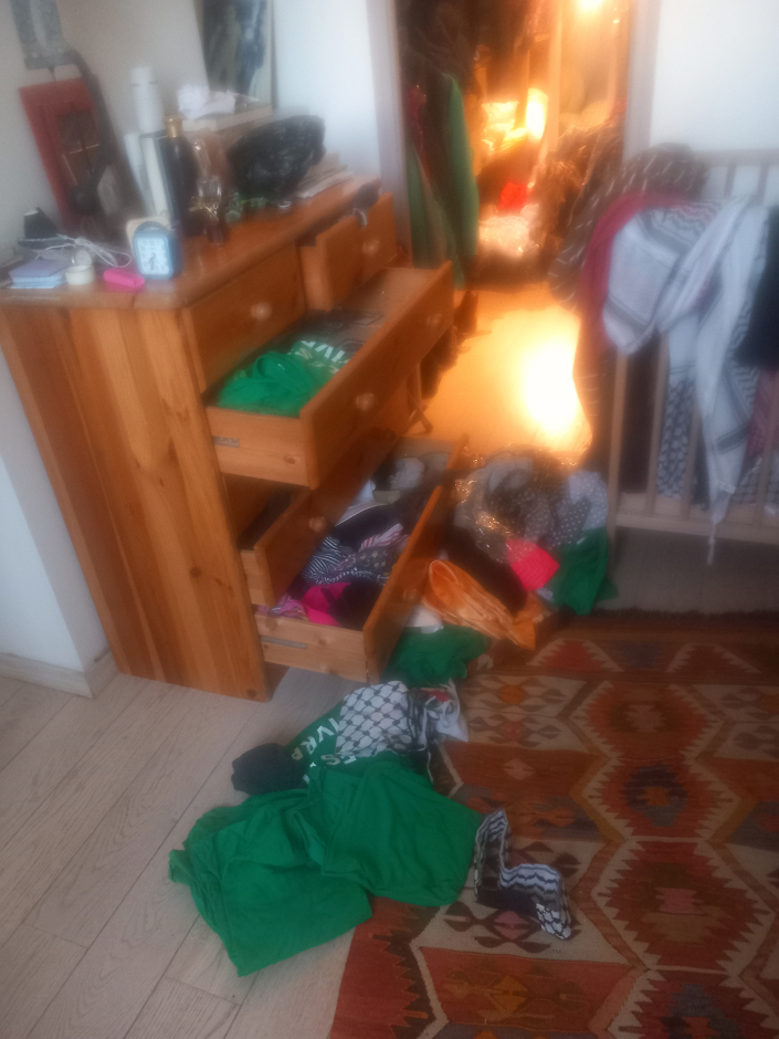Au cours de la perquisition, un des policiers se permet de dire "Ils n'ont pas l'air d'aimer les juifs", avant de savoir que nous sommes juifs et que je lui fasse remarquer son amalgame dangereux entre juifs et politique israélienne.