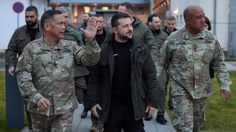 Le général de division Antonio Aguto (à gauche) et Volodymyr Zelensky, à Wiesbaden, en Allemagne, le 14 décembre 2023. [Photo d'illustration]