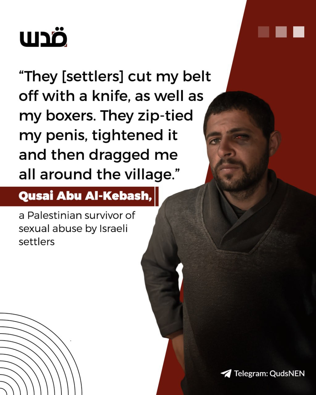 Des dizaines de colons israéliens masqués ont fait irruption de nuit dans le village de Qusai Abu Al-Kebash, en Cisjordanie occupée. Ils l'ont enlevé, ligoté, déshabillé et agressé.