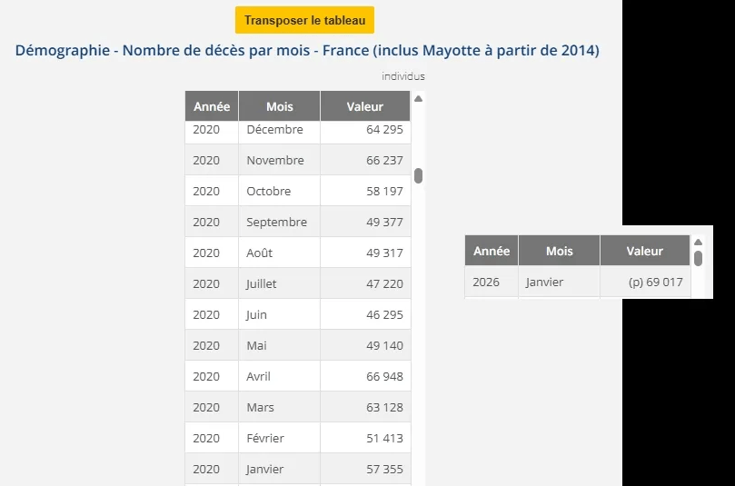 Aujourd'hui, janvier 2026 affiche 69 017 décès. Un pic hivernal classique, grippe virulente, vieillissement démographique. Aucune panique, aucun confinement. Preuve que la réponse de 2020 était disproportionnée. On pouvait protéger les plus vulnérables sans paralyser tout le pays.