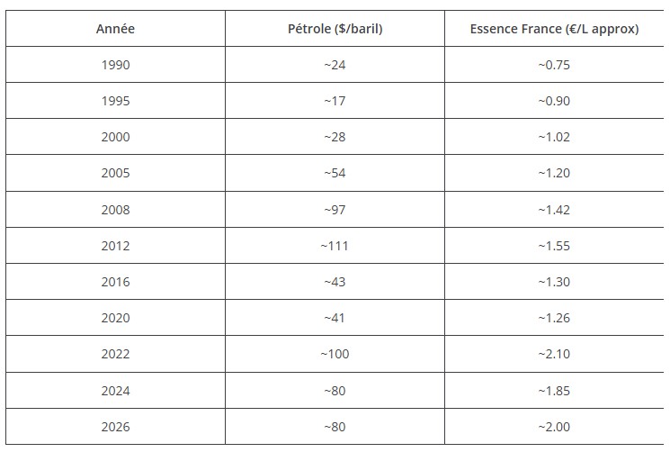 - l'évolution historique du prix du pétrole et du prix à la pompe