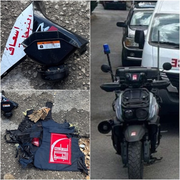 Ainsi ce mardi deux ambulanciers de Nabatieh ont été tués les forces israéliennes ayant pris pour cible leur moto alors qu'ils distribuaient de l'aide dans la région, malgré le port de leurs uniformes et l'insigne d'ambulance visible sur leur véhicule.