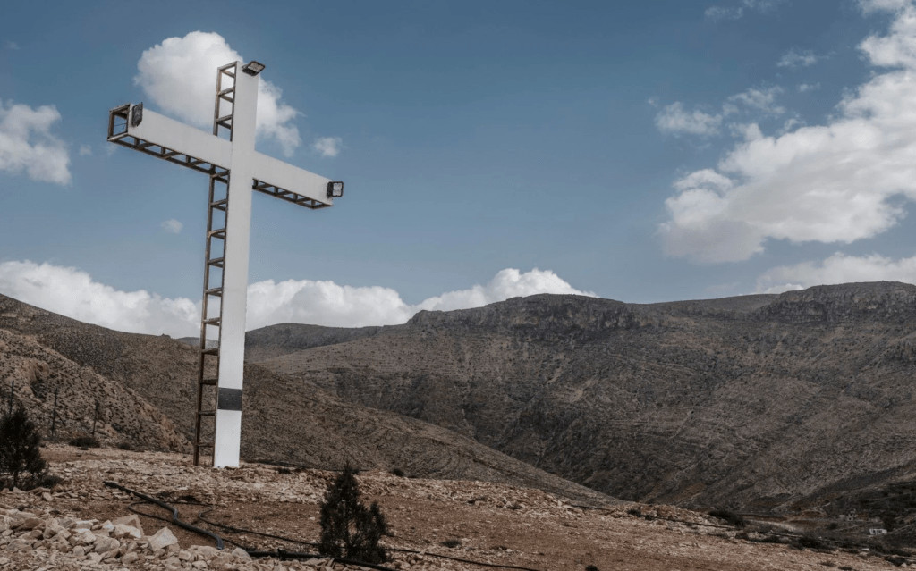 Une croix se dresse au-dessus du village chrétien de Ras Baalbek