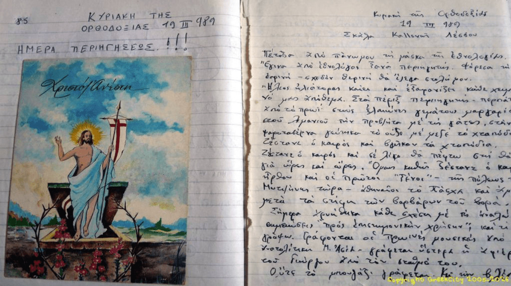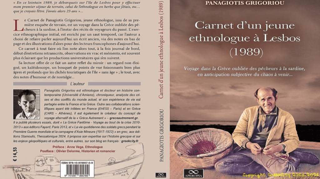 Et pour le lecteur qui souhaite d'ailleurs approfondir sur le sujet, j'ai récemment publié le texte original et authentique de mon carnet en français : " Carnet d'un jeune ethnologue à Lesbos (1989) : Voyage dans la Grèce oubliée des pêcheurs à la sardine, en anticipation subjective du chaos à venir", et il s'agit en même temps un témoignage d'époque quant à son contexte, historique et culturel.