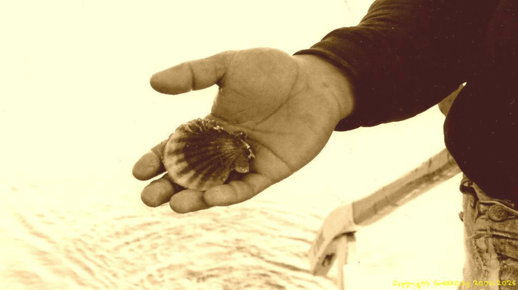 En 1989, dans le golfe de Kalloní on découvrait encore des coquilles de type Saint-Jacques (Chlamys glabra, de 40 à 70 millimètres) et ceci dans plusieurs zones. Exceptionnellement, les engins de pêche ramenaient également à la surface la fameuse coquille Saint-Jacques qui, du fait de sa rareté, ne pouvait être commercialisée et elle était devenue un mets très prisé des pêcheurs et de leurs familles.