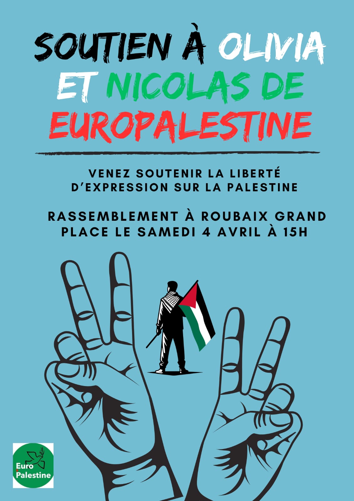Rassemblement de soutien à Olivia et Nicolas d'Europalestine Samedi à Roubaix !